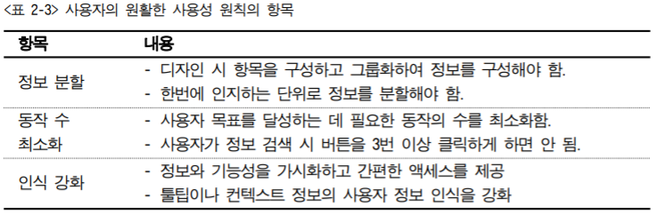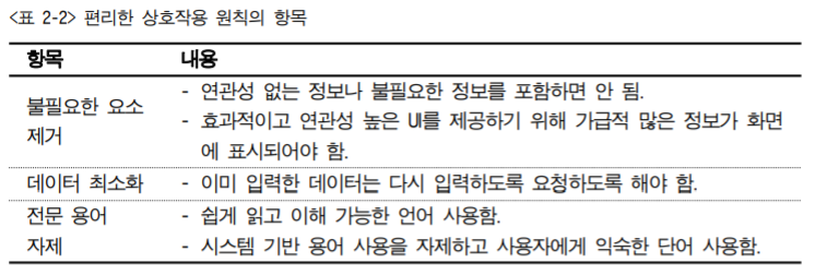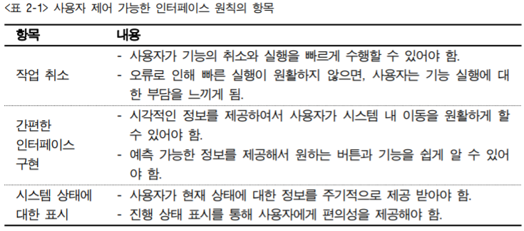 시스템 및 제품의 UX는 사용자 제어가 가능하고, 사용자와 편리한 상호작용이 가능하며, 사용자의 시행착오를 최소화할 수 있는 원활한 사용성을 제공하고, 일관성 높은 인터페이 스를 제공 시 직관적이고 예측 가능한 기능 및 서비스 제공이 가능해야 한다.